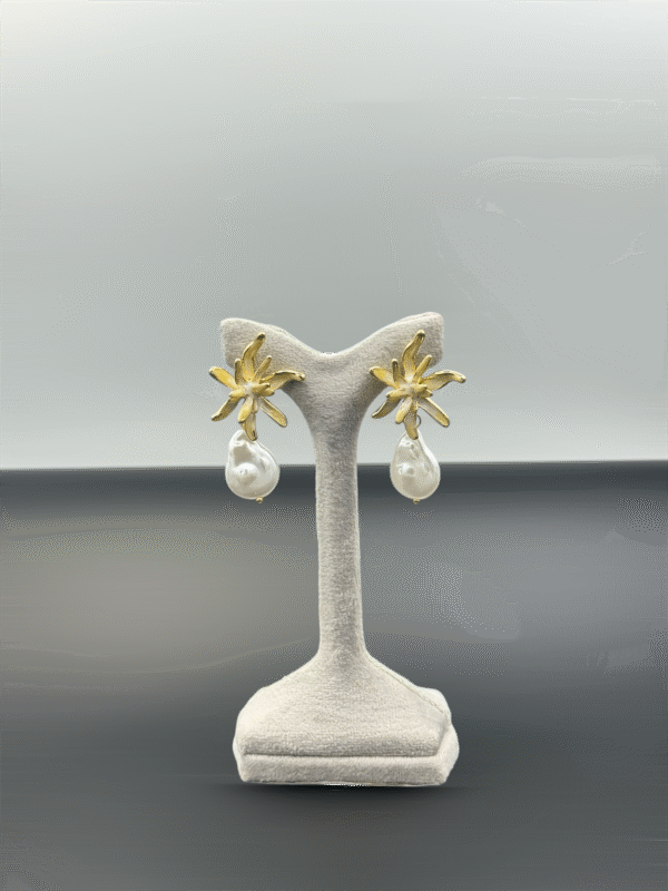گوشواره گلدن بلوم با طراحی الهامگرفته از شکوفههای طلایی و آویز مرواریدی، انتخابی منحصربهفرد برای استایلهای زنانه و شیک است. این مدل ترکیبی از لطافت و درخشندگی را به اکسسوریهای شما اضافه میکند و برای مهمانیها و مجالس رسمی انتخابی درخشان خواهد بود